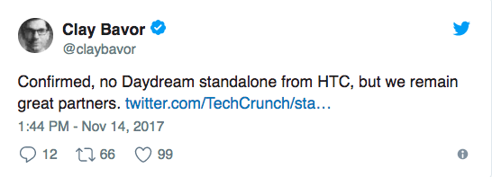 Clay Bavor 确认 HTC Daydream 一体机取消