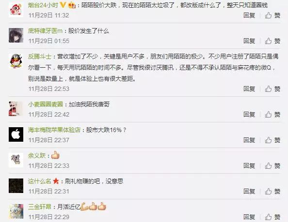 陌陌与2014年12月上市,此后月活跃用户数从历史的最高点7840万逐渐下降到2015年底的6980万,随之而来的,股价也一度跌至上市首日的50%。