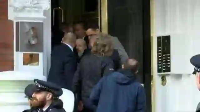 4月11日,阿桑奇被拖出伦敦厄瓜多尔大使馆,在隐匿了7年后, 被英国警方逮捕,被拖出大使馆时还高喊“RESIST!”。