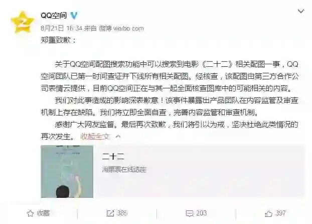 1. 《二十二》截图被做成表情包,QQ空间发布道歉声明