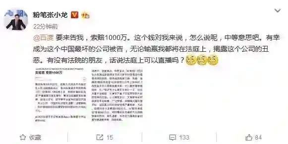 3. 百度起诉粉笔网CEO张小龙及自媒体,索赔1500万