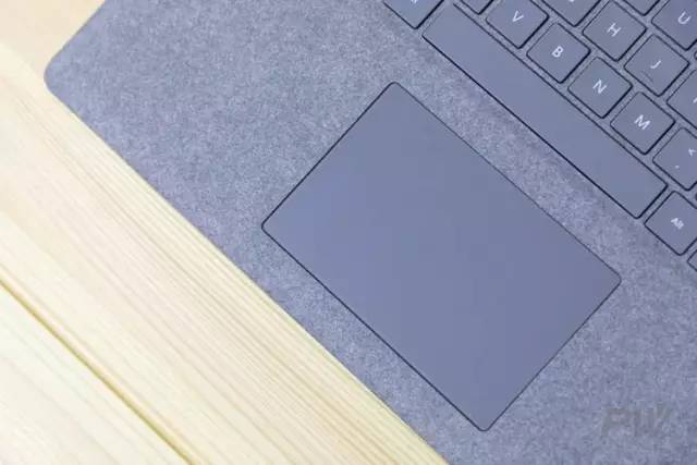 而且微软硬件部门钟爱的 Alcantara 被赋予了新的价值。Alcantara 覆盖于键盘掌托上,用激光精确雕出每一颗按键的开孔,连与金属底壳拼合的边缘也被精心打磨和二次上色。更重要的是,它削减了机器的距离感,多了几分亲和力。Surface Laptop 的掌托上覆有防油污涂层,疏水,将近一个月使用下来也未见沾染污渍。