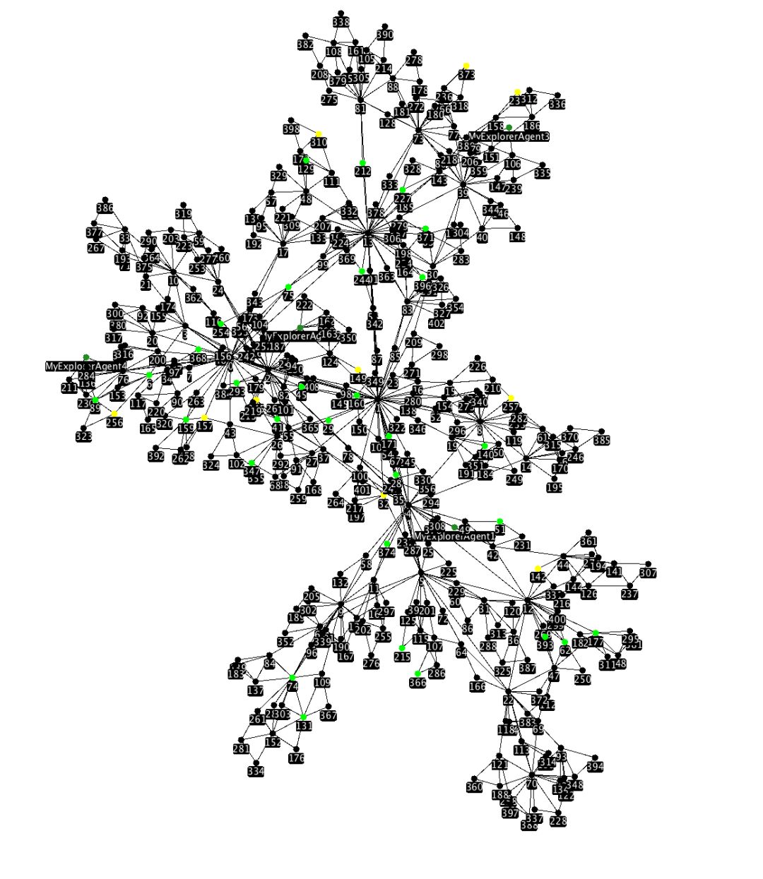 探险者智能体必须同意谁来探索未知图形的哪个部分,以优化它们的移动并防止冲突。