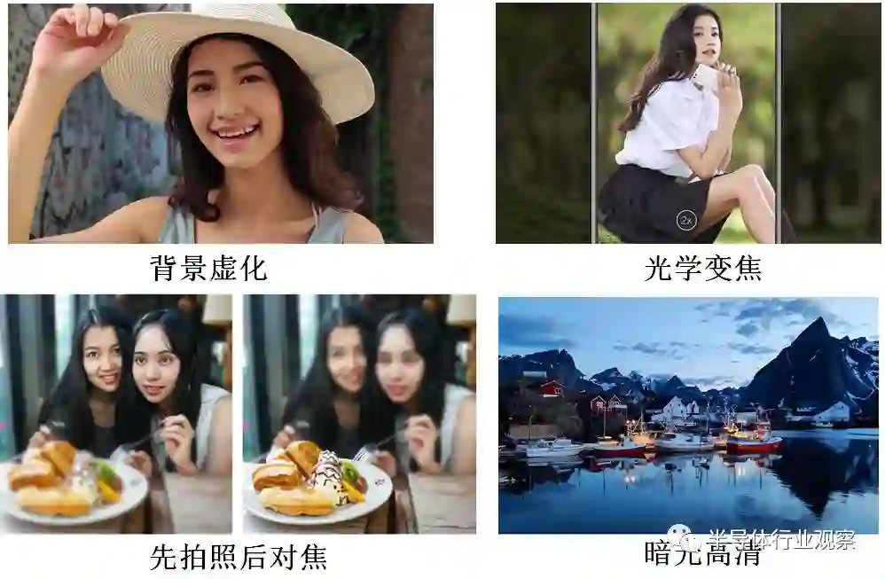 算法供应商需要根据手机厂商的需求,针对不同搭配组合的双摄模组进行针对性的双摄算法设计和优化,实现背景虚化、暗光高清、光学变焦等功能。最后手机厂商联合模组厂、算法供应商等进行拍照效果的联合调优。双摄算法门槛极高。主要体现在如下几点。