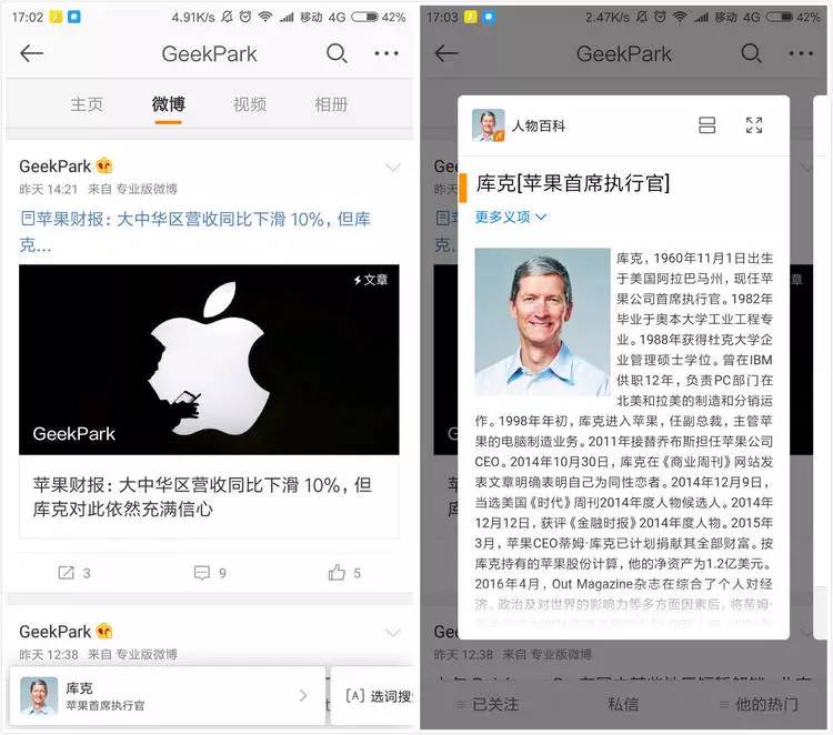MIUI 9 中所有的更新都围绕一个「快」,其中「传送门」功能最为亮眼。在任意应用中长按文字,系统会对内容进行语义分析,预判用户的想法,自动将地点、百科、链接等相关信息显示在屏幕下方,提高了跨应用获取信息的效率。