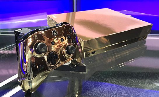 从微软给出的图片来看,这台24K金限量版Xbox One X主机应该采用的是纯金主机外壳,同时手柄也使用了24K金,显然成本巨大。不过想要获得这台Xbox主机的要求也相当苛刻,微软表示将会在6个区域的Xbox Game Pass会员中进行选择,首先考察的是这6个区域玩家的平均成就点,之后再从成就点高的区域抽一名玩家赠送24K金版Xbox One X主机。