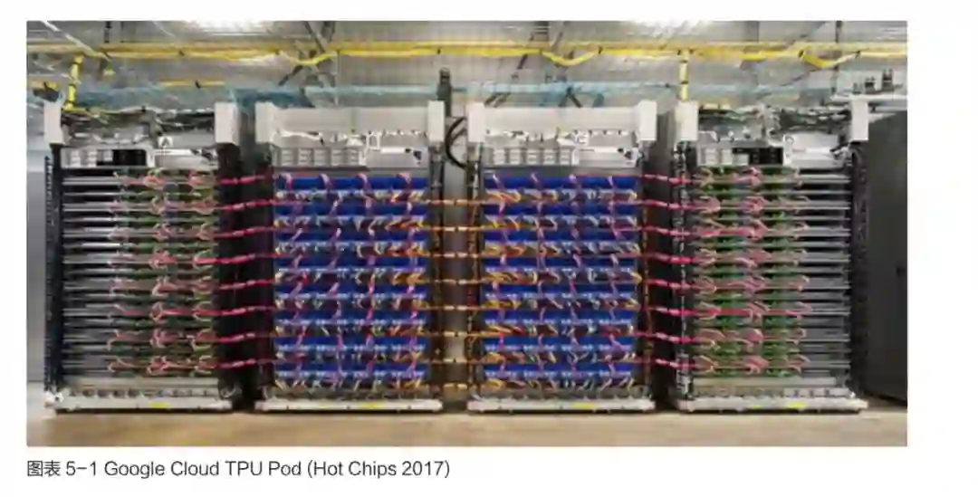 (Cloud TPU 的机柜包括 64 个 TPU2,能够为机器学习的训练任务提供 11.5 PFLOPS 的处理能力和 4 TB 的 HBM 存储器。这些运算资源还可以灵活地分配和伸缩,能够有效支持不同的应用需求。)