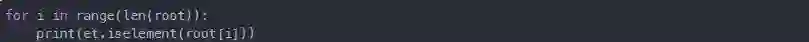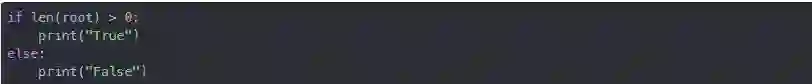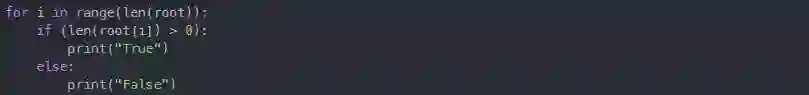 上面的代码将输出“True”,因为根节点确实有子节点。但是,如果我们对根节点的子节点进行相同的检查,就像下面的代码中所示,输出将是“False”。