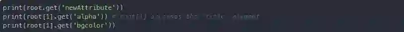 现在我们来尝试获取在上面代码中设置的属性的值。这里我们使用root元素上的数组索引访问子元素,然后使用get()方法检索属性: