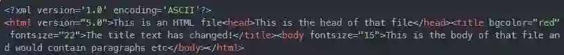 如您所见,我们成功地更改了HTML文档中的一些文本。由于我们传递给tostring函数一个xml_declaration参数,所以还自动添加了XML doctype声明。