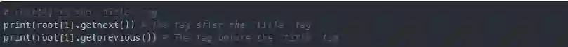在这里,您可以看到root[1].getnext()检索到了“body”标记,因为它是下一个元素,而root[1].getprevious()检索了“head”标记。