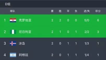 话说回来,明早(6月27日)2点,梅西所在的阿根廷将会迎来D组最后一轮小组赛的对手,尼日利亚。此前,阿根廷首轮战平冰岛,次轮输给克罗地亚,目前只积1分,排名倒数第一。