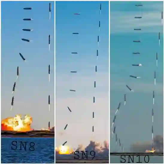 分别进行了10千米级高度的测试飞行,发射和返回都非常成功,但SN8和SN9都是在最后着陆阶段发生了触地爆炸。