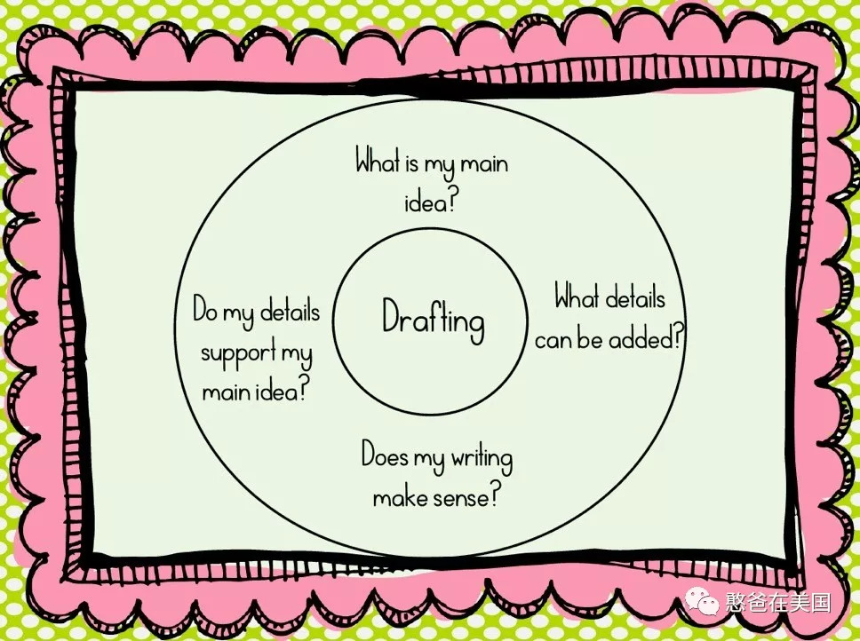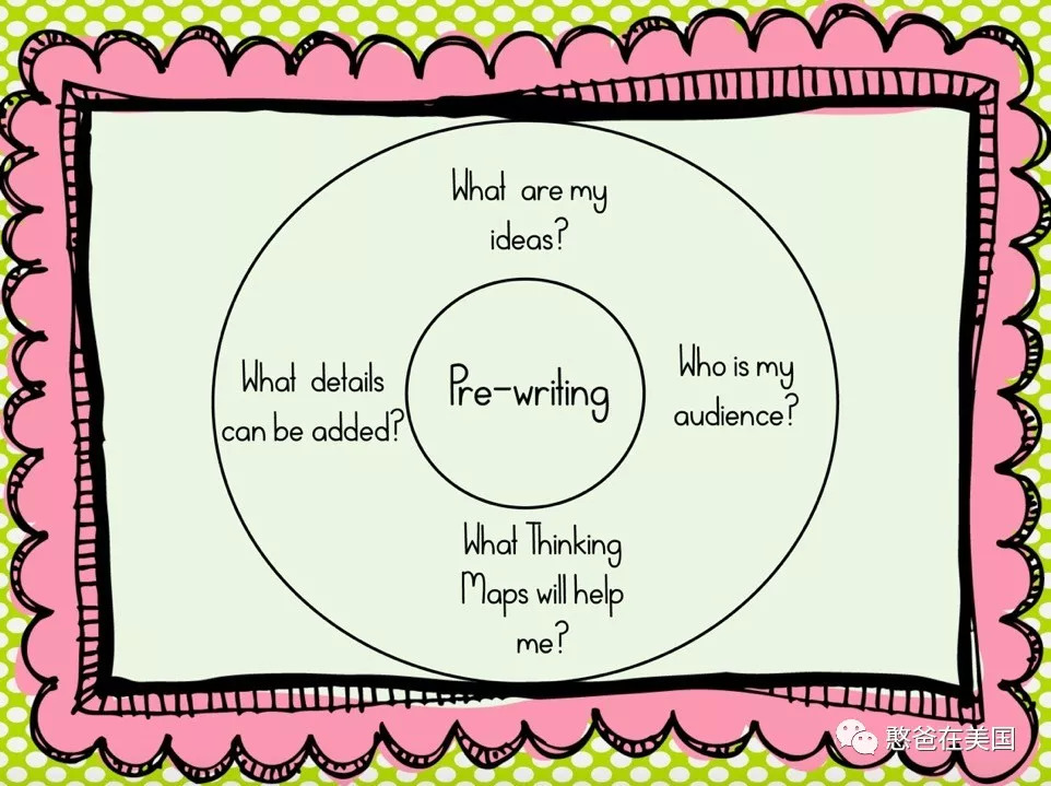 初期引导的关键在于Pre-writing(写之前的头脑风暴)和Drafting(打草稿),很多孩子反映没东西写,问题就是出在这两部分身上。