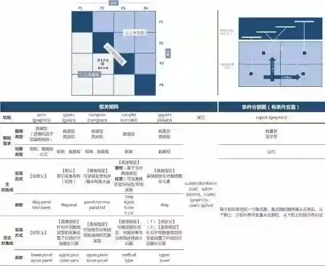 当考察多个变量间的相关关系时,通常将多个变量的两两关系以矩阵的形式排列起来,R提供了散点图矩阵、相关矩阵等多种可视化方案,囊括了众多函数。本文对R语言相关关系可视化的函数进行了初步梳理(全篇框架如下),后续大家可根据个人需求及函数功能择优选择。