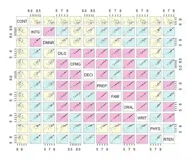 cpairs(USJudgeRatings,panel.colors=judge.color,pch=".",gap=.5)