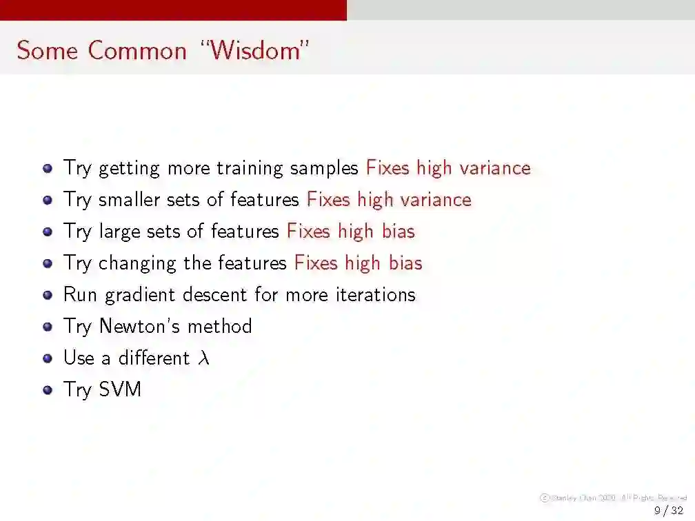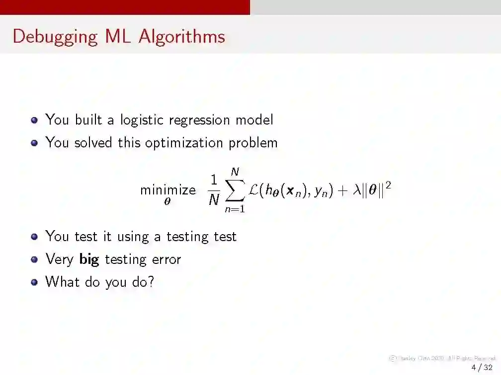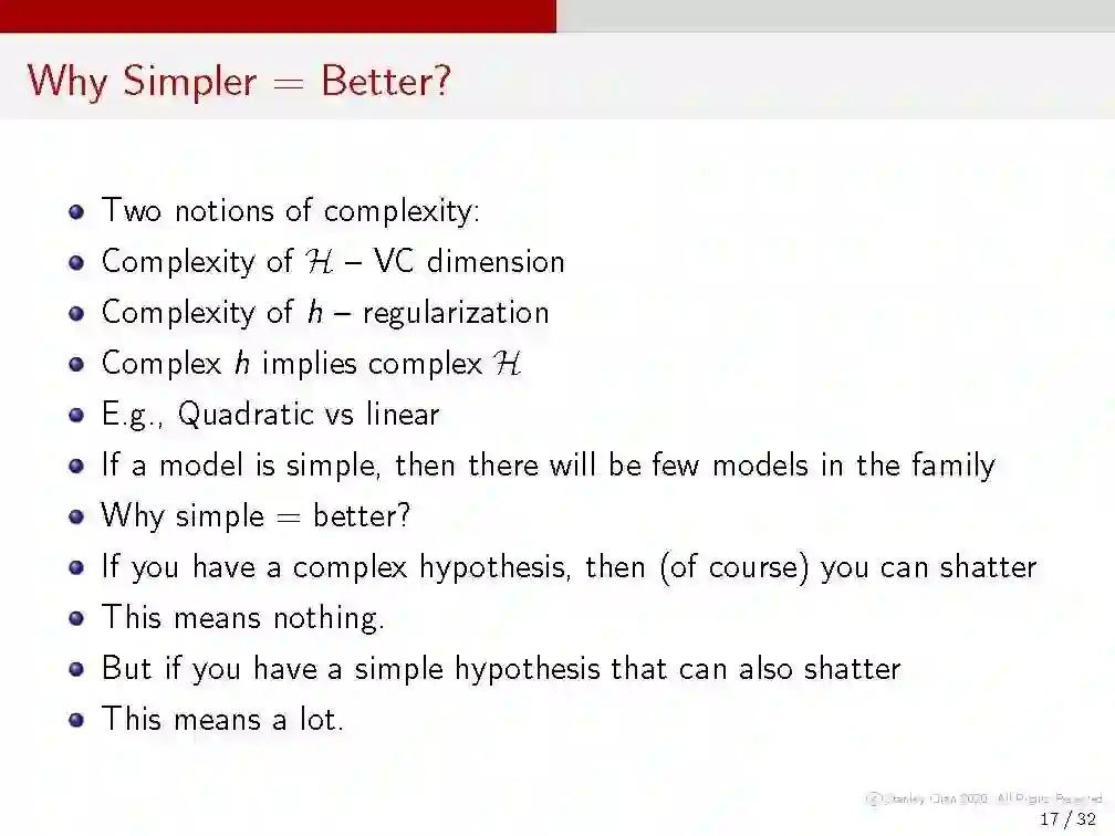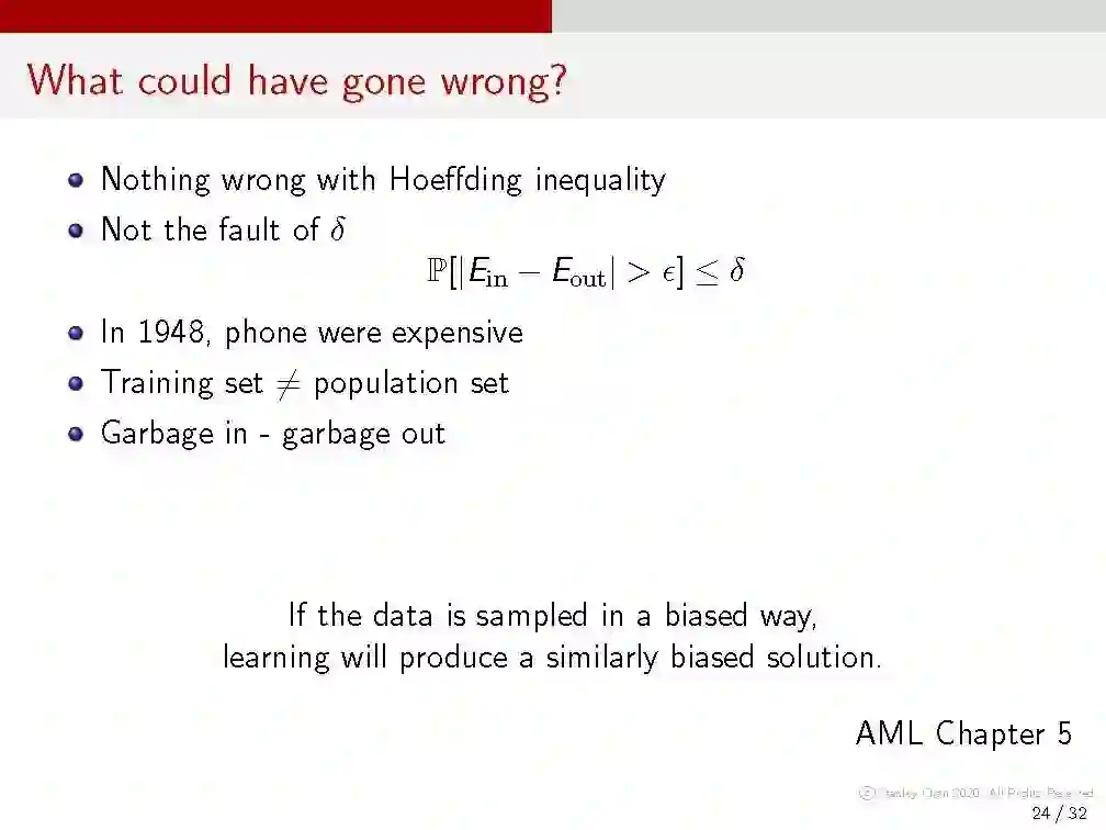 学习理论。偏差与方差、训练与测试、泛化、PAC框架、Hoeffding不等式、VC维。