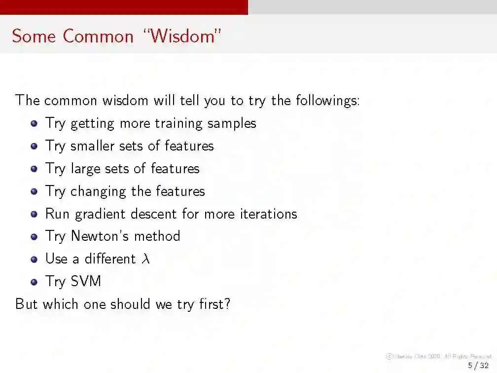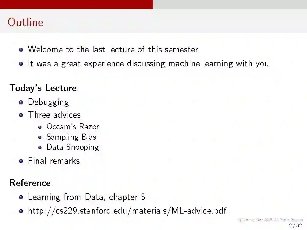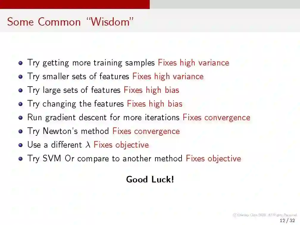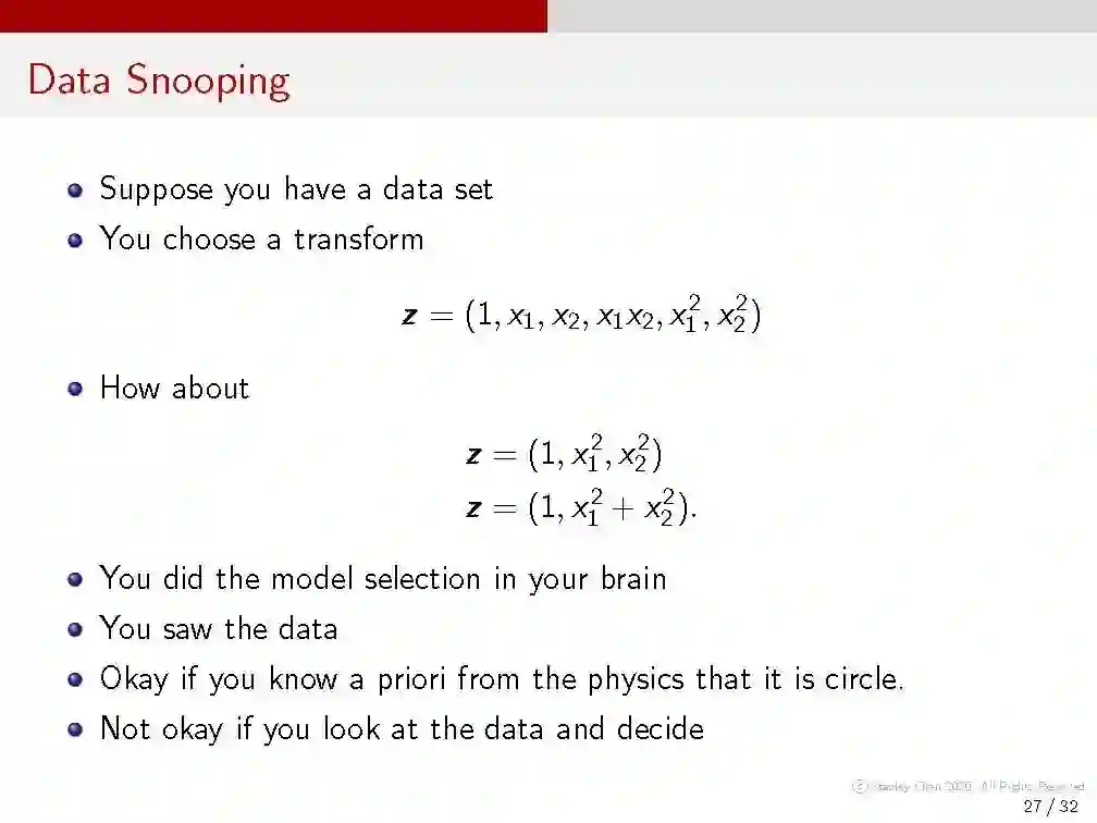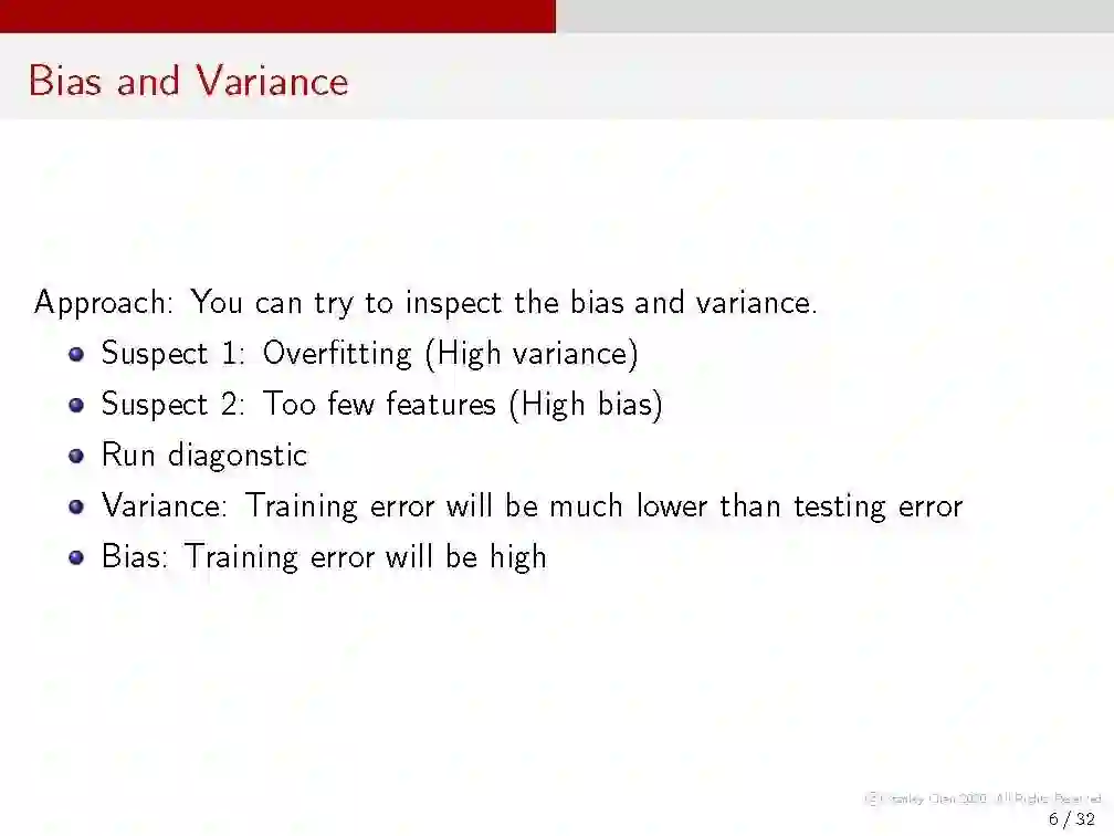 学习理论。偏差与方差、训练与测试、泛化、PAC框架、Hoeffding不等式、VC维。