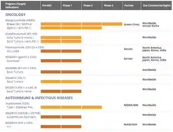 具体来说,Incyte获得了开发和商业化MGA012在所有适应症上的独家全球权利。公司CEO Steven Stein在一份申明中表示:“我们相信,MGA012加入到我们的临床管线中将对我们践行Immuno-Oncology领域的长期开发策略非常重要。”