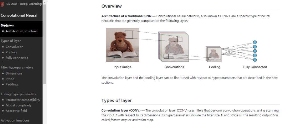 本文主要介绍这份总结的第一部分,即CNN部分的内容,后两部分RNN、窍门与技巧部分,读者可自行参看Github上放出的资源: