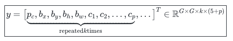 是检测到的p类的one-hot representation,k是anchor boxes的数量。