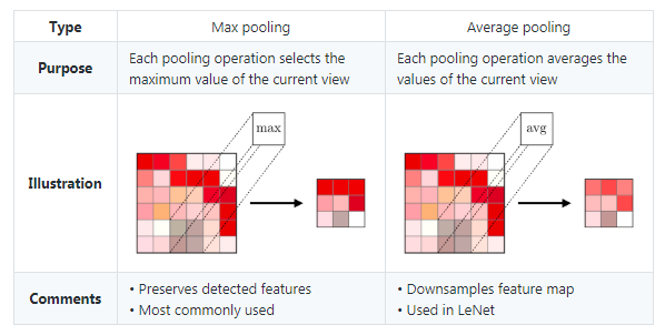 池化层(POOL)是一种下采样操作,通常在卷积层之下使用,该卷积层执行一些空间不变性。其中最大池化和平均池化属于特殊操作,分别采用最大值和平均值。