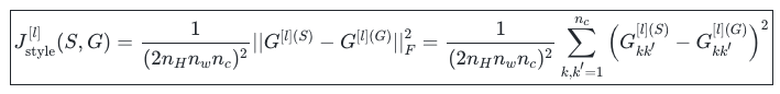 风格成本函数用于确定生成的图像G与风格S的不同之处。它的定义如下: