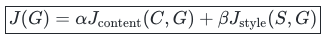 总成本函数的定义是内容和风格成本函数的组合,由参数α, β加权,如下所示: