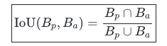 备注:IoU∈[0,1]。按照惯例,如果IoU(Bp,Ba)⩾0.5,预测边界框Bp被认为是合理的。