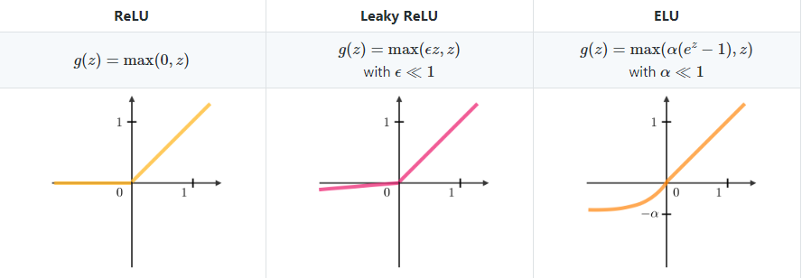 整流线性单元 : 整流线性单元层(ReLU)是激活函数g,作用于所有元素。它旨在为网络引入非线性特征,其变量总结在下图中: