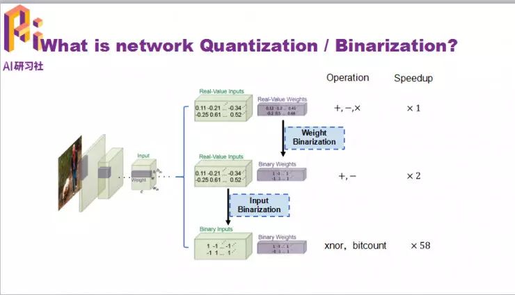 神经网络的压缩和加速现在已经成为一个热门课题,这个领域有多种研究方法,网络量化就是其中之一。网络量化分为输入量化和权值量化两种。而同时将输入和权值量化会造成网络精度的大幅下降。在