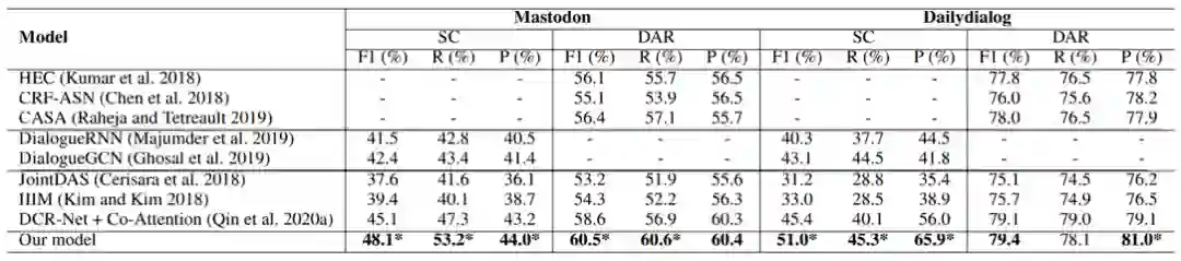 我们的实验结果在所有指标上超过了现有DAR和SC的单独建模的模型,这表明了我们联合建模中提取mutual interaction information的有效性。