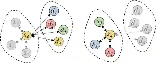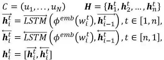 如图3所示,前人的联合建模工作中,Cerisara等人[1]专注于相互交互信息(图3左),Kim等人[2]专注于对话历史信息(图3右)。最近,Qin等人[3]提出DCR-Net模型,虽然取得了较好效果,但是该模型却是以一种pipeline的方式来获取两种信息:在Encoder端获取对话历史信息,在relation layer端获取交互信息。但是我们认为,该类流水线式的模型存在一个问题:
