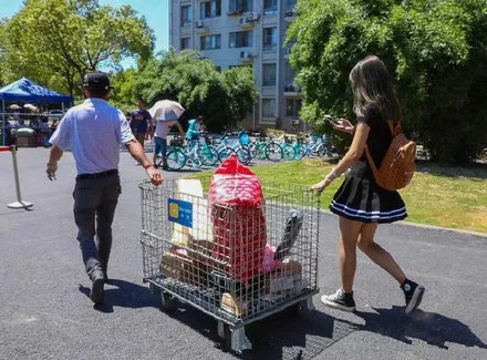 不少学校为此专门为大包裹辟出了安放场地,江南大学专门甚至开通了“新生取快递专列”。