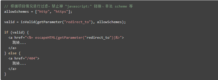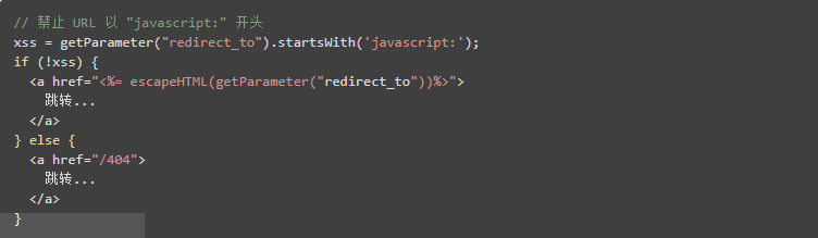 这段代码,当攻击 URL 为 http://xxx/?redirect_to=javascript:alert('XSS'),服务端响应就成了: