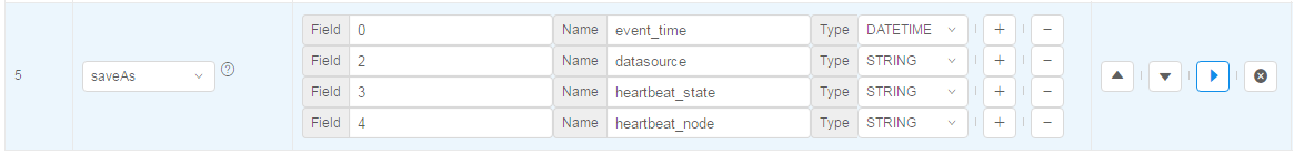 最后我们把感兴趣的列输出,使用saveAs算子进行输出, 指定列名和类型。