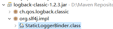 这个地方重点其实就是第12行的代码,getLogger的时候会去classpath下找STATIC_LOGGER_BINDER_PATH,STATIC_LOGGER_BINDER_PATH值为”org/slf4j/impl/StaticLoggerBinder.class”,即所有slf4j的实现,在提供的jar包路径下,一定是有”org/slf4j/impl/StaticLoggerBinder.class”存在的,我们可以看一下: