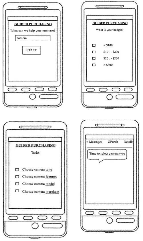 另一个从去年公开的名为“通过智能手机进行导购”的 Google 专利应用,它是一个自动购物助手,当它检测到你正在查看购物系统时,它可能会帮助你购买物品。假设您正在浏览电商网站上的最新运动鞋。这就是系统指导你完成采购流程时的可选择产品类型、功能、型号和商家。