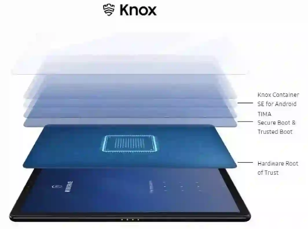 Galaxy Tab S4 甚至使用生物认证和安全文件夹来保护私有文件和应用程序。运用从芯片上构建的防御级别的安全平台 Samsung Knox,用户在打开平板电脑的瞬间即已启动,通过多层实时的安全措施,将数据放在一个只有主人的虹膜才可以打开的安全文件夹中,让商务人士用得放心。