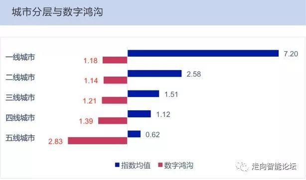 由此可见,虽然数字后线城市距离头部城市的绝对量仍然差距比较大,但是后线城市指数增长更快、潜力很强。随着后线城市的逐渐发力,数字鸿沟开始呈现出弥合的趋势。