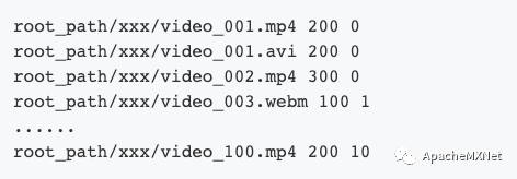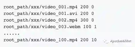 首先是自定义的 dataloader,我们提供了一个 VideoClsCustom 的类,基本适用于大部分视频分类的任务。不论用户的数据是怎么存放,怎么命名, 什么格式的,只需要提供一个如下的文本文件就可以开始训练了。