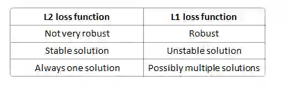 L1损失函数的结果更具鲁棒性,也就是说对于异常值更加不敏感。而根据其范数“天性”,L2的求解更为简单与“唯一”。
