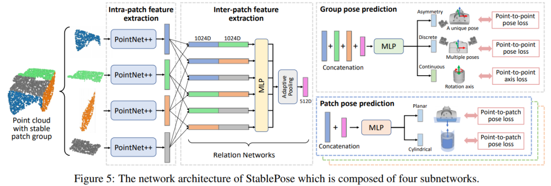 由四个子网络组成的 StablePose 的网络架构图。