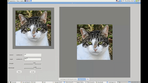 如下图所示,如果你想让一只猫看起来可爱一点,只需要输入「cute cat」,模型就能够把猫的眼睛放大,同时改变其他影响其可爱值的特征。