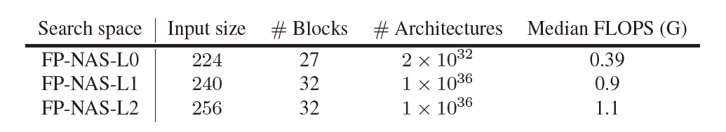 FBNetV2 和 FP-NAS 搜索空间的微架构。
