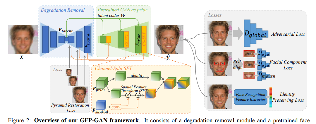 五官复原效果惊艳,腾讯 ARC 利用 GAN 人脸先验来解决。本文也被 CVPR 2021 会议接收。
