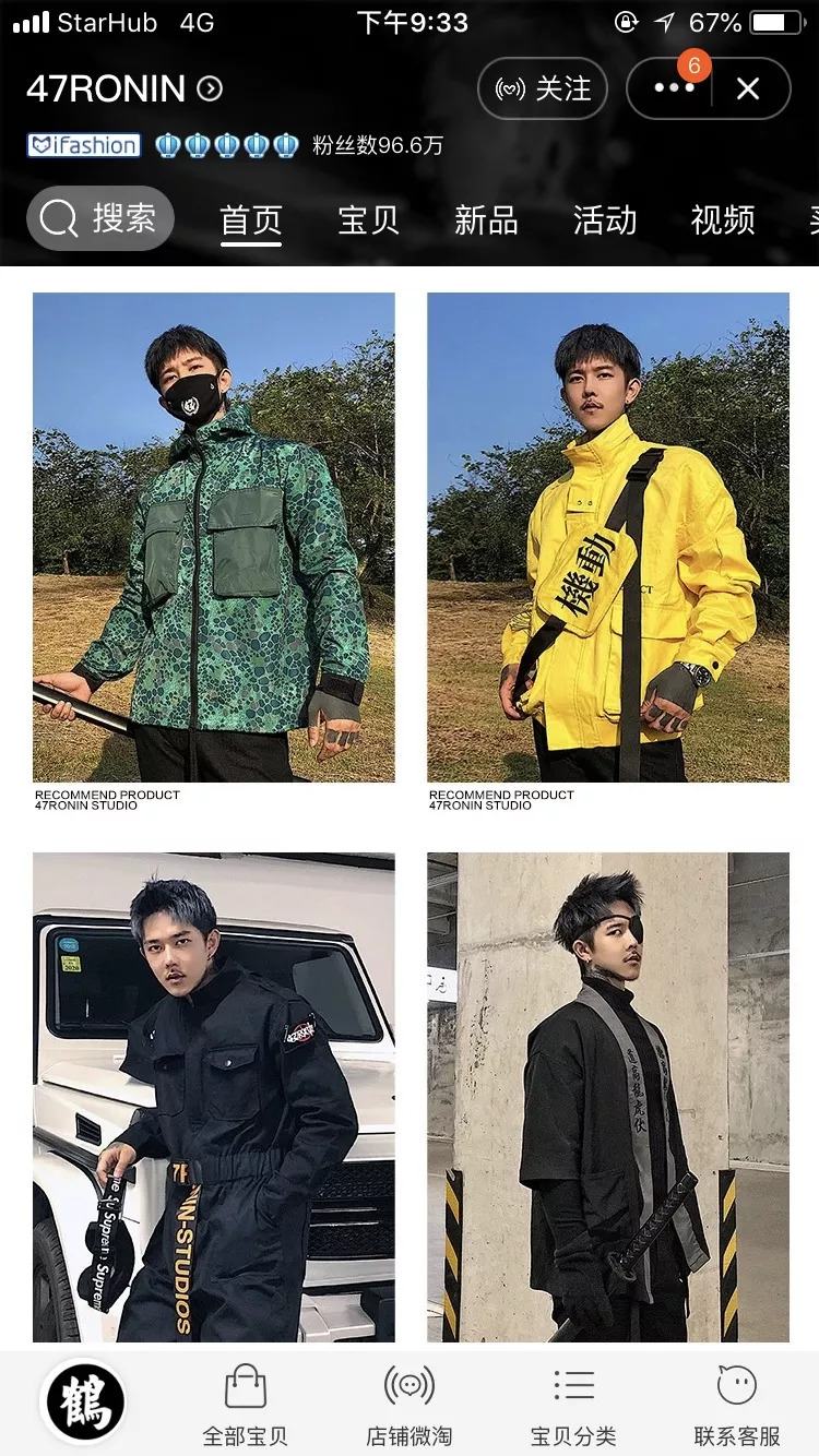 在创立47RONIN之初,白鹤没有其他宣传途径,只能自己做模特在快手上拍视频宣传,白鹤如今的158万快手粉丝都是很早就积攒下的。“别人关注我可能是因为我本人纹身比较多,可能平常穿的衣服他们又觉得不错,就问我哪买的,所以我正好就可以做服装。”如今,白鹤在淘宝的店铺也已经得到了超过95万收藏。