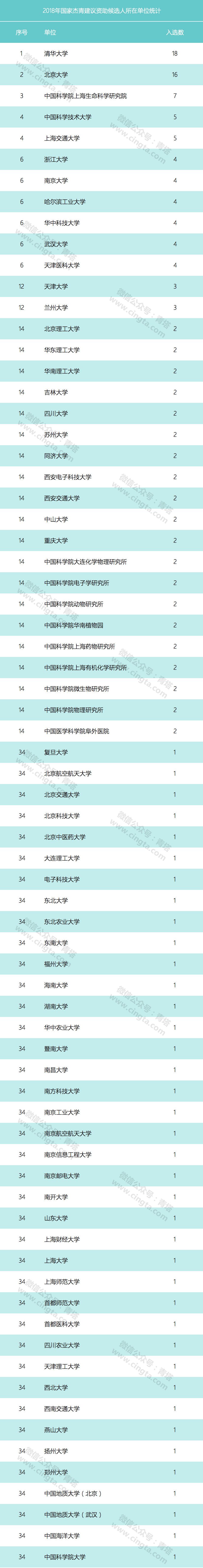 总体来看,相比前几年,今年的国家杰青获得者更多地集中在各大名校和中国科学院,不少985、211高校以及绝大多数地方高校甚至一个也没有。此外,和往年一样,今年的杰青在东部地区科研单位集中,很多中西部省份一个也没有。2018年的国家杰青建议资助人名单和依托单位统计情况如下: