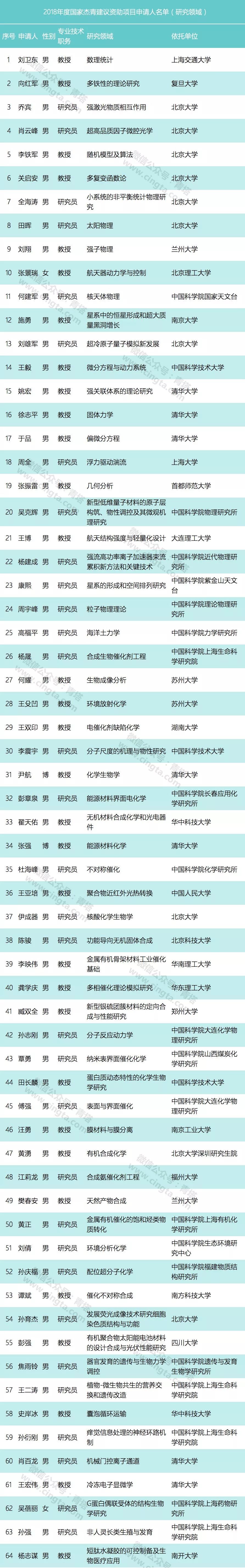 今早(8月3日),科技日报正式公布了国家自然科学基金委员会关于公布2018年度国家杰出青年科学基金建议资助项目申请人名单的通告,2018年国家杰青正式出炉。