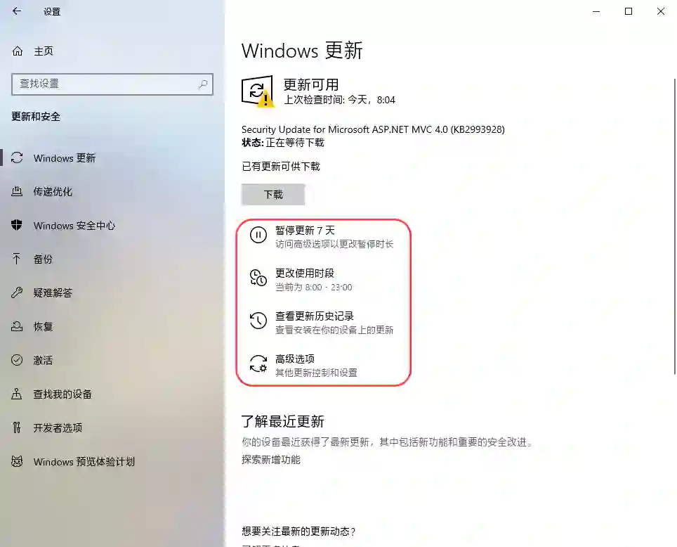 不过,这一问题早已得到了解决。你可以通过更改使用时段、设置暂停更新等方式来避免系统在你使用时自动重启。此外,如今系统在下载完更新内容以后,也不会马上更新,而是会在你下一次关机 / 重启时更新,不再打扰你的工作、学习。